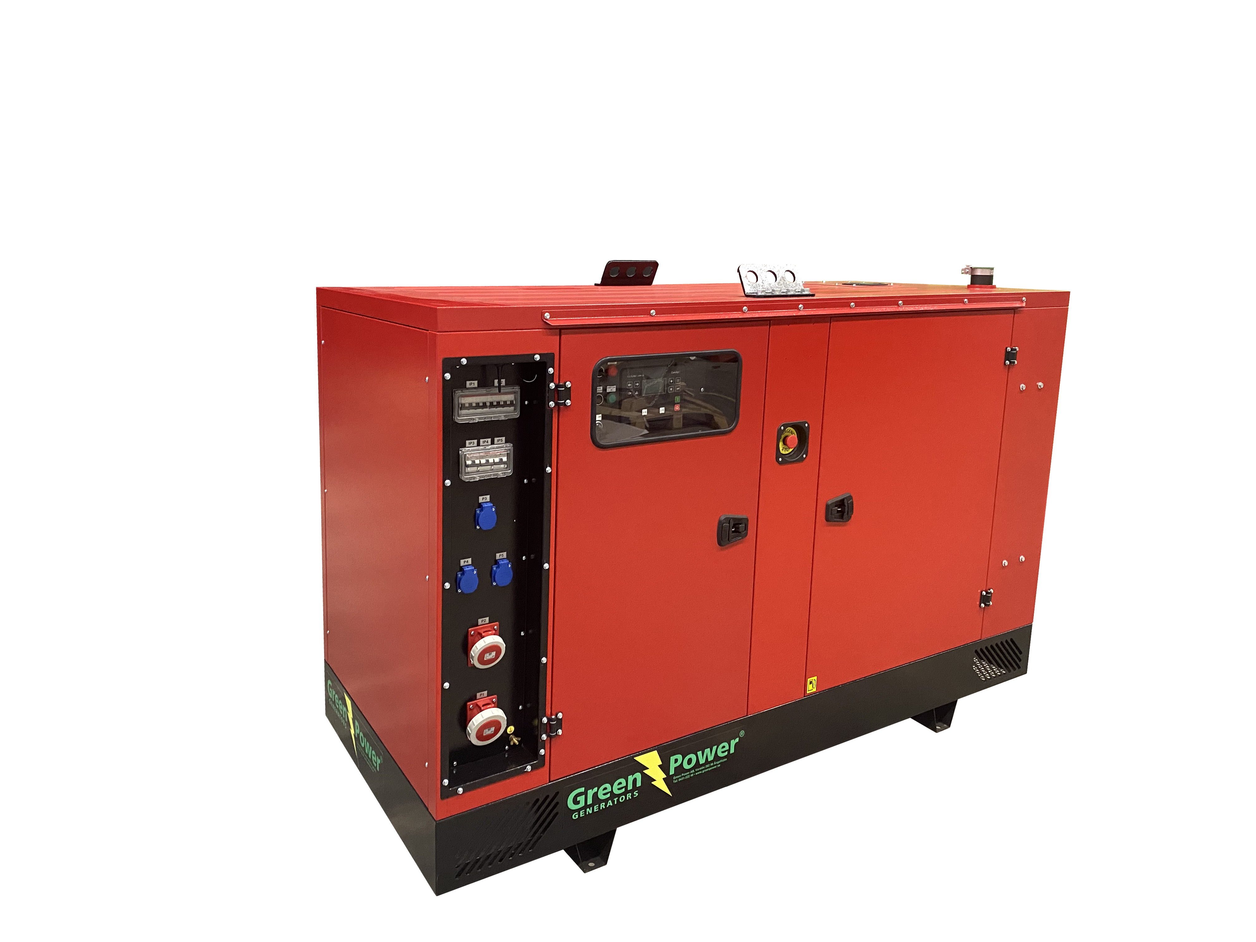 ELVERK GreenPower med vattenkyld dieselmotor av märket Kohler. Levereras med stabilt ramverk och Green Power elektropanel, voltmätare, frekvensmätare, amperemätare, tim-mätare, startnyckel och indikationspanel för olja, batteriladdning och låg bränslenivå.